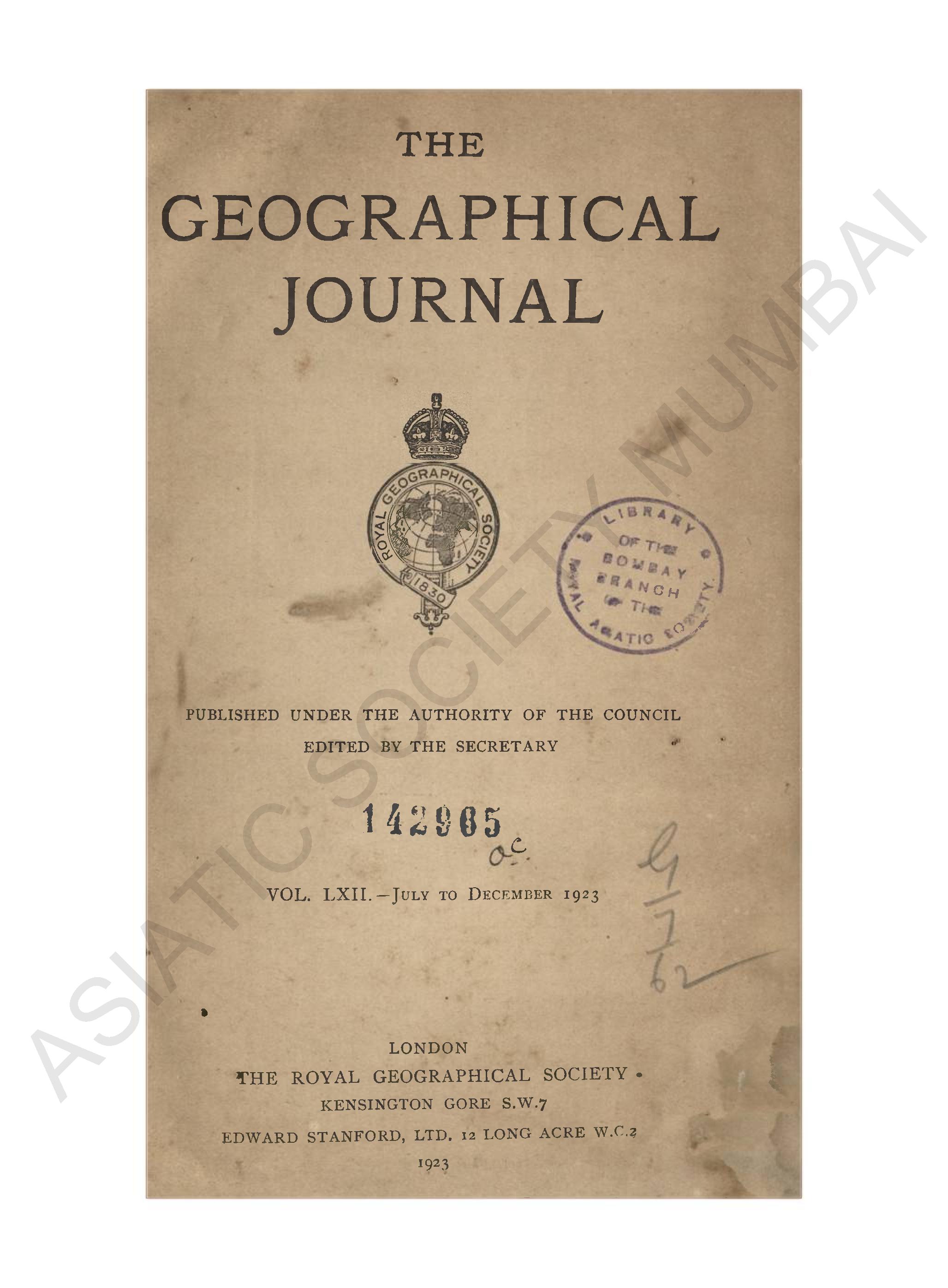 Geographical Journal. Vol. LXII. - July to December, 1923.