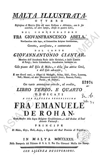 | Author | : | Abela, F. Giovanfrancesco Ciantar, Giovanni Antonio |