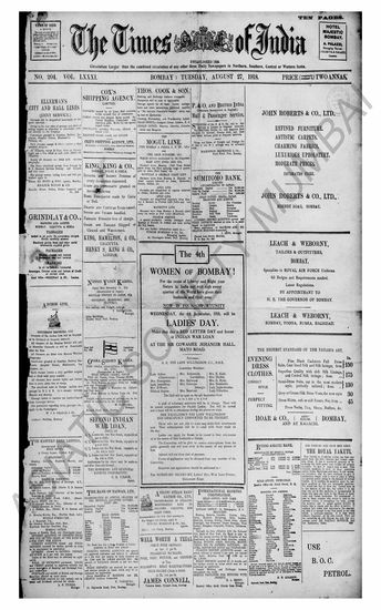 The Times Of India, 27 August 1918