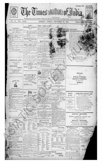 The Times Of India, 27 September 1918