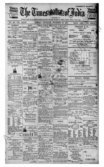 The Times Of India, 22 November 1919