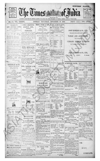 The Times Of India, 18 November 1920