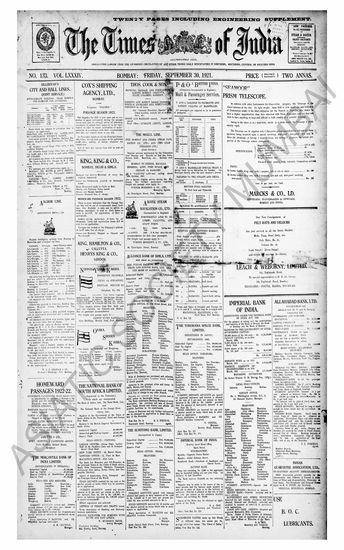 The Times Of India, 30 September 1921