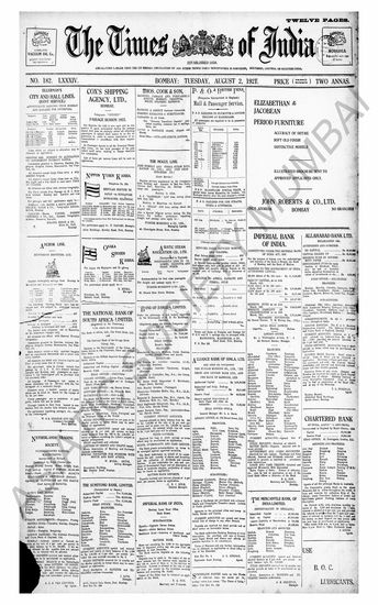 The Times Of India, 2 August 1921