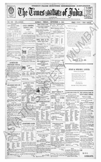 The Times Of India, 2 September 1921