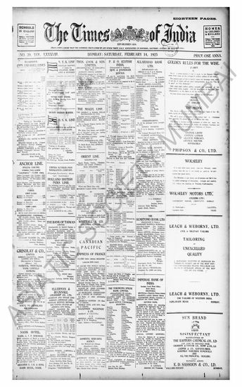 The Times Of India, 14 February 1925