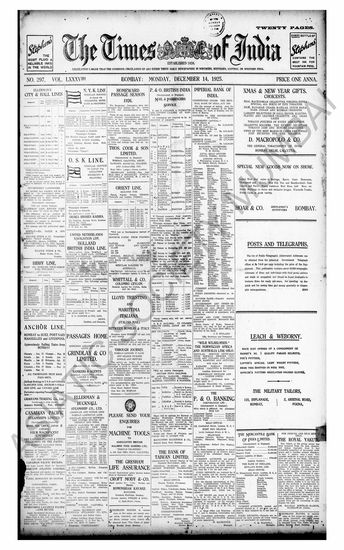 The Times Of India, 14 December 1925
