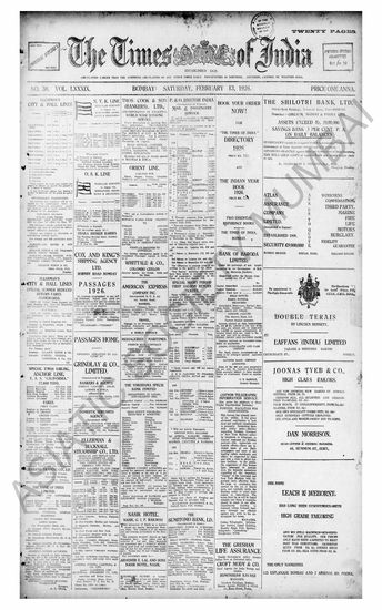 The Times Of India, 18 February 1926