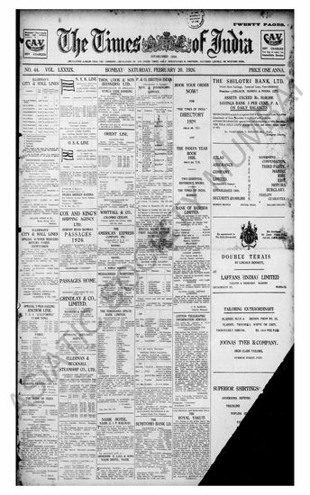 The Times Of India, 20 February 1926