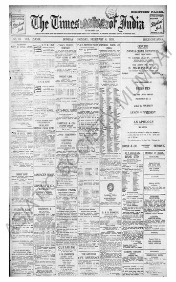 The Times Of India, 8 February 1926