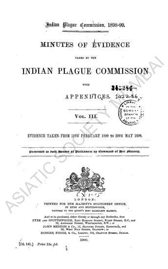 Minutes of Evidence taken by the Indian Plague Commissi ...