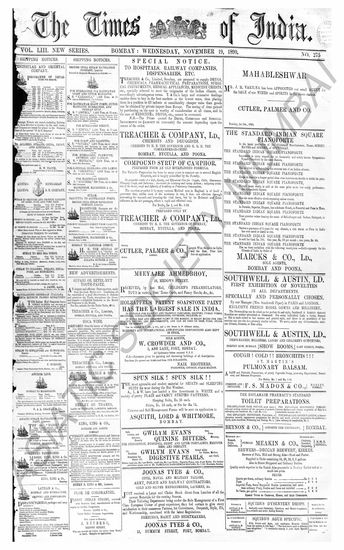 The Times Of India, 19 November 1890