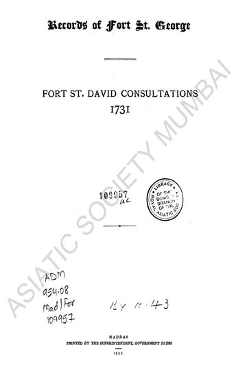 | Author | : | India. Madras. Madras Presidency. Fort St. George Records MacQueen, P. |