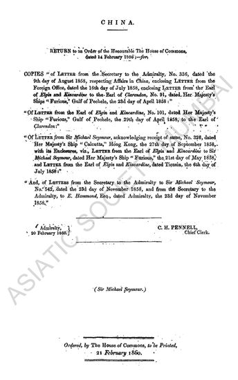 Correspondence respecting Affairs in China 1859-60