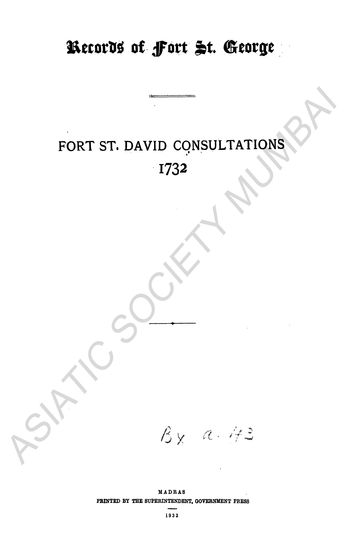 | Author | : | India. Madras. Madras Presidency. Fort St. George Records MacQueen, P. |