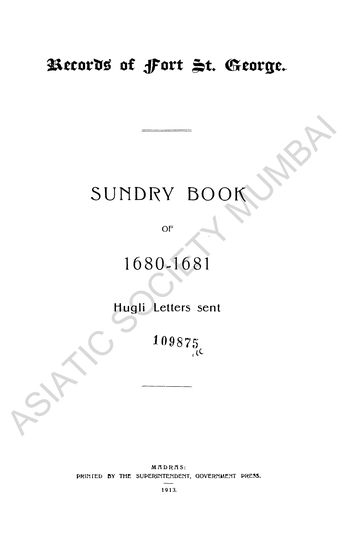 Records of Fort St. George; Sundry Book of 1677-78