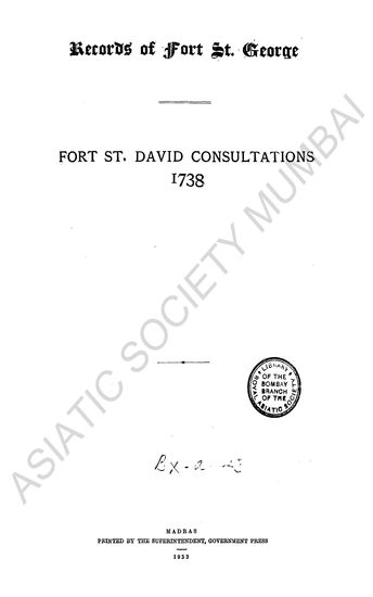 | Author | : | India. Madras. Madras Presidency. Fort St. George Records MacQueen, P. |