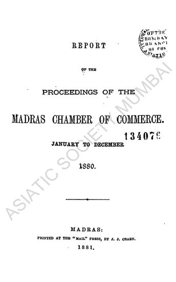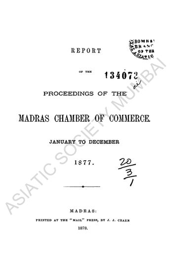 | Author | : | Madras (India, British). Madras Chamber of Commerce |