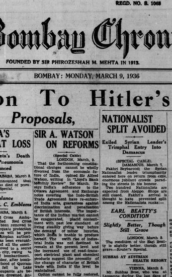 The Bombay Chronicle, 9 March 1936