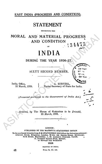 | Author | : | India (British). East India (Progress and Condition) Hirtzel, A. |