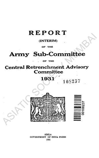 Report (Interim) of the Army Sub-Committee of the Centr ...