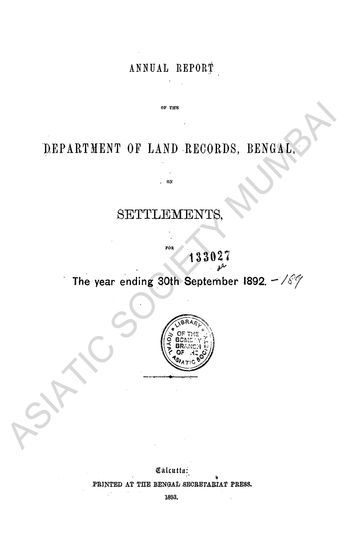 | Author | : | Bengal (India, British). Land Records and Agriculture Department |