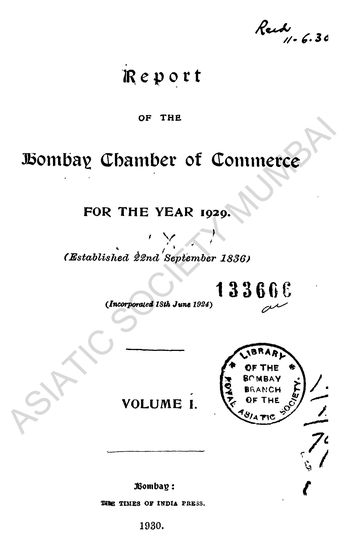| Author | : | Bombay (India, British). Bombay Chamber of Commerce |