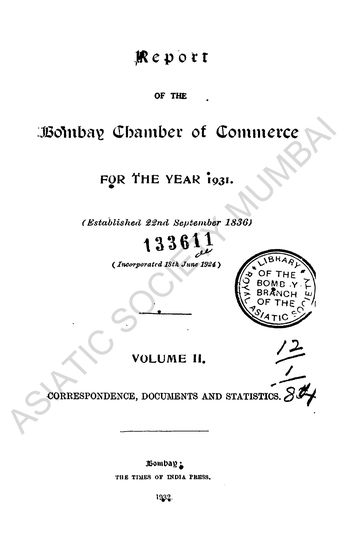 | Author | : | Bombay (India, British). Bombay Chamber of Commerce |
