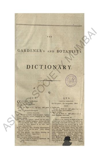 The Gardener's and Botanist's Dictionary; containing the best and newest methods of cultivating and improving the Kitchen, Fruit and Flower Garden and Nursery of performing the Practical parts of Agriculture; of managing vineyards and of propagating all sorts of Timber Trees; to which are now first added a complete Enumeration and Description of all Plants hitherto known; with their Generic and Specific Characters, places of growth, times of flowering and uses both medicinal and economical, in Two Volumes, Vol. I, Part II, CLA.-I.