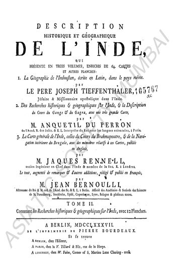 | Author | : | Tieffenthaler, Joseph Bernoulli, Jean M. |