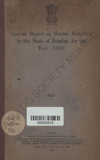 Annual Report on Mental Hospitals in the State of Bomba ...