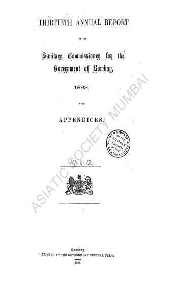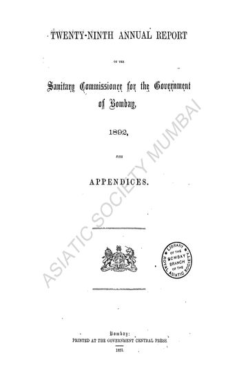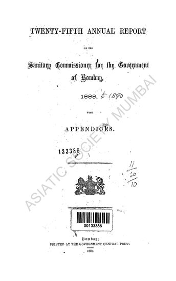 | Author | : | Bombay. India. Government of Bombay. Sanitary Commissioner Department |