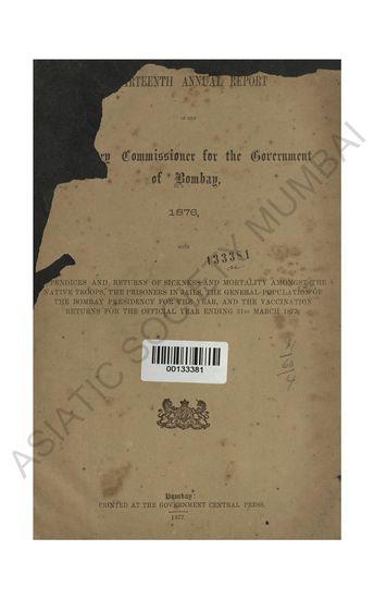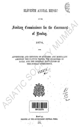 Twelfth Annual Report of the Sanitary Commissioner for the Government of Bombay, 1875; with Appendices and Returns of Sickness and Mortality amongst the Native Troops, the Prisoners in Jails and the General Population of the Bombay Presidency