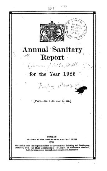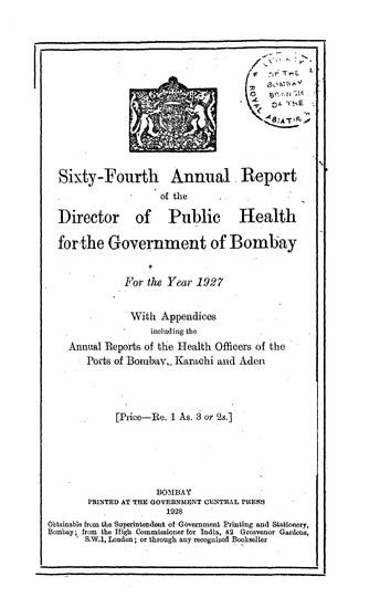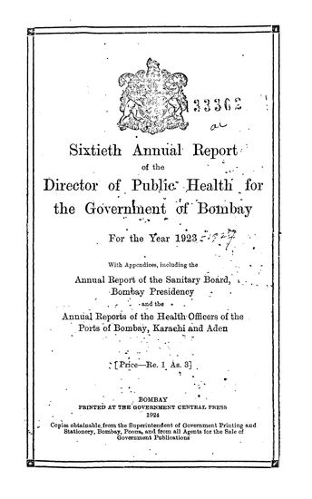 Author : Bombay. India. Government of Bombay. Sanitary Commissioner Department