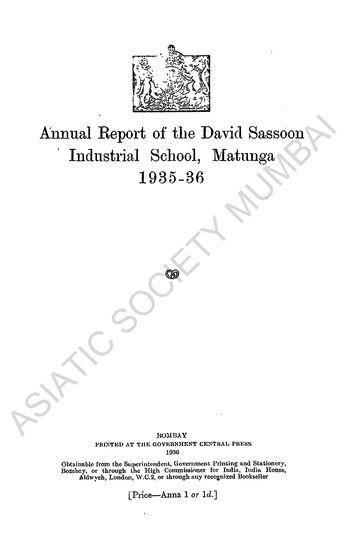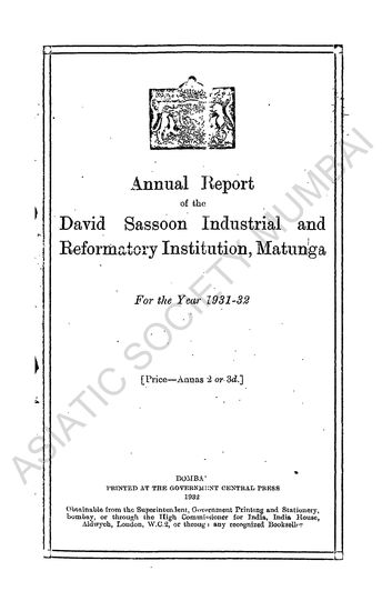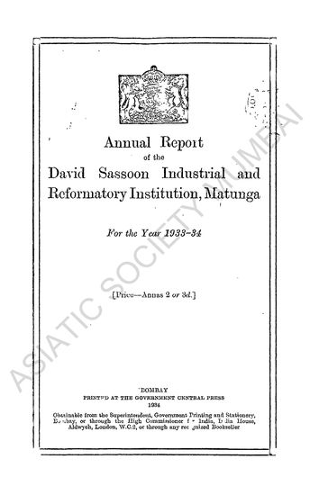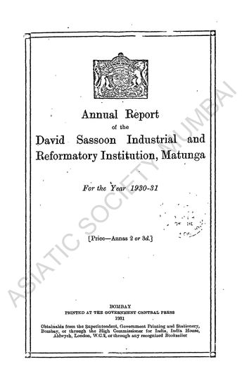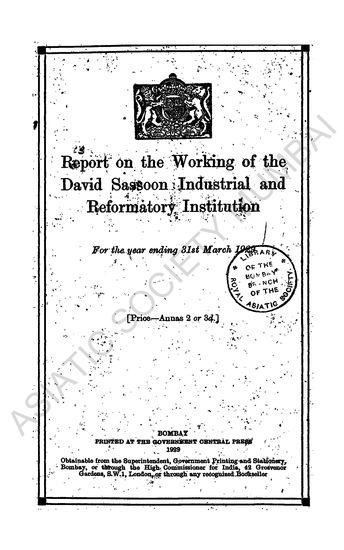 | Publisher | : | David Sassoon Industrial and Reformatory Institution |