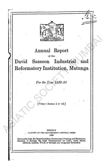 | Author | : | David Sassoon Industrial and Reformatory Institution |