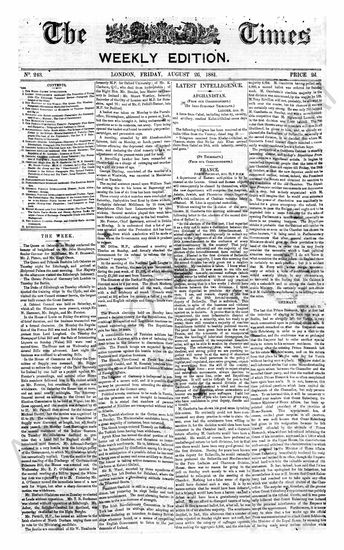 The Times (Weekly Edition), 26 August 1881