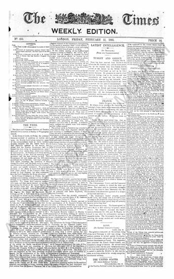 The Times (Weekly Edition), 11 February 1881