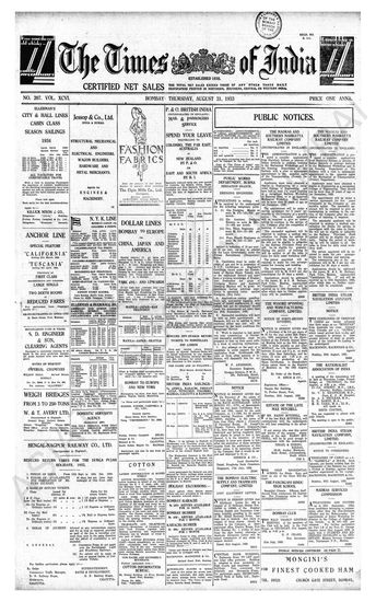 Times of India, August 31, 1933.
