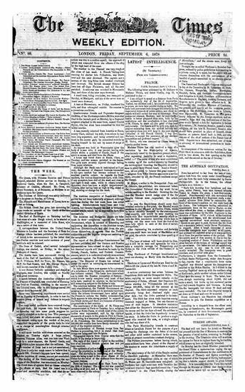 The Times (Weekly Edition), 6 September 1878