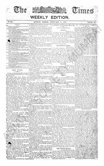The Times (Weekly Edition), 1 February 1889