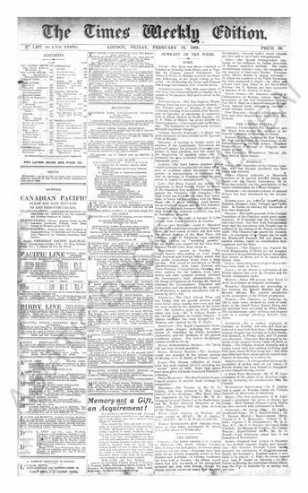 The Times (Weekly Edition), 19 February 1886