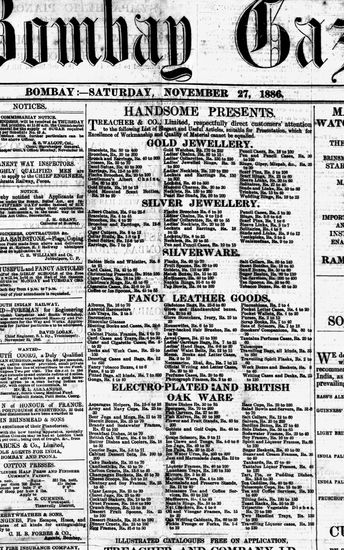 The Bombay Gazette, 27 November 1886