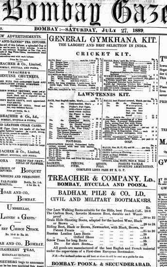 The Bombay Gazette, 27 July 1889