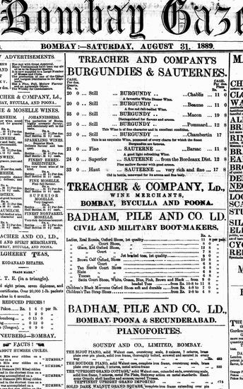 The Bombay Gazette, 31 August 1889