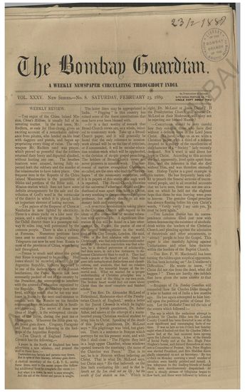 The Bombay Guardian, 23 February 1889
