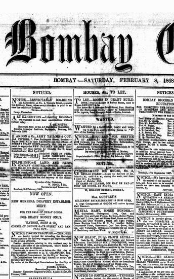 The Bombay Gazette, 8 February 1868