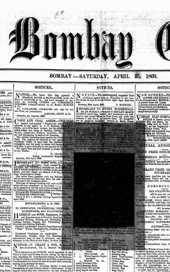 The Bombay Gazette, 25 April 1868