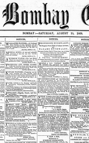 The Bombay Gazette, 15 August 1868
