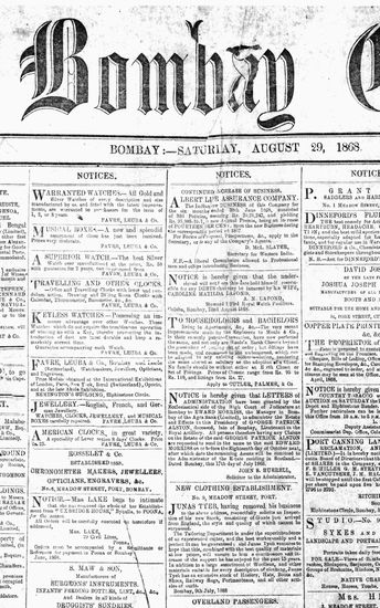 The Bombay Gazette, 29 August 1868